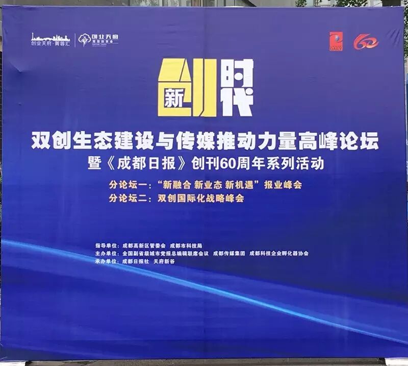 1、促进会监事单位天府新谷举行的创·新时代——双创生态建设与传媒推动力量”高峰论坛暨《成都日报》创刊60周年系列活动。此次会议在全国尚属首次,在当日的高峰论坛上,欧洲排名第一的加速器SBC落户成都,创业天府·成都科技传媒服务平台2.0正式上线,传媒双创跨界融合,共同打造“创业之城、圆梦之都,成都创业、创业都成”。促进会会员服务部部长石冬娅、唐倩应邀参加活动。